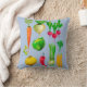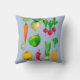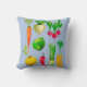 A cheerful watercolor art themed throw pillow featuring a vibrant selection of hand painted garden vegetables on your choice of background accent color (front and back). This sweet design featuring a brightly painted selection of vibrant carrots, radishes, turnip, yellow snap beans, Brussels sprouts, onions, red pepper and parsley is printed on a lovely quality accent pillow. Available in a variety of size and fabric options. Makes a thoughtful housewarming or hostess gift. Add your own text or background color to make it a truly one of a kind gift.