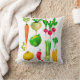 A cheerful watercolor art themed throw pillow featuring a vibrant selection of hand painted garden vegetables on a simple white accent pillow. This sweet design featuring a brightly painted selection of vibrant carrots, radishes, turnip, yellow snap beans, Brussels sprouts, onions, red pepper and parsley is printed on your choice of size and fabric options. Makes a thoughtful housewarming or hostess gift. Add your own text or background accent border color to make it a truly one of a kind gift.