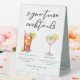 This garden wedding signature cocktails table tent sign features simple black typography above 2 of your favorite drinks and their ingredients for your summer wedding bar. A chic Long Island Iced Tea and Lemon Drop Martini drawing add a fun flair to your bar menu. Complete with the couple's names and date for their reception.