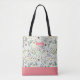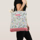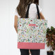 Custom allover print tote bag personalized with your monogram name or other text. This cute girly design features a whimsical floral pattern in coral, green, aqua and yellow colors. Use the design tools to edit the monogram fonts and colors or upload your own photos.