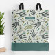 Custom allover print tote bag personalized with your monogram name or other text. This cute girly design features a whimsical pattern of botanical greenery and leaves. Use the design tools to edit the monogram fonts and colors or upload your own photos.