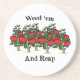 Tomatoes are a staple for most every gardener and none of us can wait for those juicy red fruits. Fun graphic design with a row of tomato plants surrounded by the play on words Weed 'em And Reap.