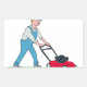 Gardener Mowing Lawn Cartoon Rectangular Sticker
