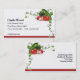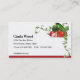 This gardener's business card design has tomato, bell pepper, cucumber and onions displayed on front and back with a line of the red color out of the onion at the bottom.
