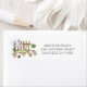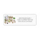 Return address labels featuring a gardening scene including a wheel barrow, shovel & potted plants with a wooden fence backdrop. Matching moving announcements available in our shop.