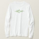 I love this shirt. I had written to the artist asking her if this picture was available on a shirt, and she wrote me back telling me where I could find the shirt. These shirts can be custom made to have a different saying. I loved this saying and went with it. The artist wrote me back later to tell me that she had seen my order go through. How's that for service? Pretty special. It's just as displayed. Perfect!