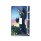 Gargoyle Guardian Art by Traci Van Wagoner prints, posters, accessories, and gifts features a blue and gray stone gargoyle looking back at you from his perch high above the city in the early morning with a textured sunrise sky of yellow, orange, pink, violet and blue. Get yourself a gargoyle guardian today to keep a watch out for you.