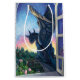 Gargoyle Guardian Art by Traci Van Wagoner prints, posters, accessories, and gifts features a blue and gray stone gargoyle looking back at you from his perch high above the city in the early morning with a textured sunrise sky of yellow, orange, pink, violet and blue. Get yourself a gargoyle guardian today to keep a watch out for you.