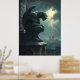 Gargoyle Halloween with Stormy Sky and Lightning Poster