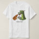 Green dragon cartoon holding a garlic bulb. Flame with the word garlic comes out of his mouth. Custom text.