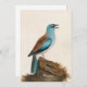 William Lewin’s Garrulous Roller is a vibrant and meticulously detailed painting showcasing a striking brown and turquoise roller perched on a log against a minimalist neutral background. The artist masterfully captures the bird’s vivid plumage and poised stance, emphasizing its natural beauty. The understated backdrop draws attention to the roller’s colorful feathers and highlights Lewin’s expertise in ornithological art.
