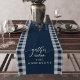 Create a cozy and inviting atmosphere for your holiday gatherings with this Gather Navy Blue Buffalo Check Fall Thanksgiving Table Runner. Featuring a stylish buffalo plaid design with the word "Gather" and customizable family name, this table runner is perfect for adding a personalized touch to your fall and Thanksgiving decor. Ideal for family dinners and festive celebrations, it brings a warm and welcoming vibe to your table setting.