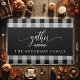 Elevate your Thanksgiving table with this Gather Black and White Buffalo Check Cloth Placemat. Featuring a cozy buffalo plaid design in gorgeous tones and the word "Gather" along with a customizable family name, this placemat is perfect for creating a welcoming and festive atmosphere for your holiday gatherings. Add a personalized touch to your fall dining decor with this charming placemat.