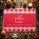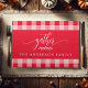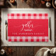 Elevate your Thanksgiving table with this Gather Red and White Buffalo Check Cloth Placemat. Featuring a cozy buffalo plaid design in gorgeous tones and the word "Gather" along with a customizable family name, this placemat is perfect for creating a welcoming and festive atmosphere for your holiday gatherings. Add a personalized touch to your fall dining decor with this charming placemat.