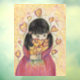 Gathering Love Hearts Artwork features a girl holding a bouquet of hearts. Golden hearts swirl around her. Art is a reminder to receive love and how it can sustain us. Inspirational artwork by Laurel Latto for DonnaBellas Angels.