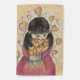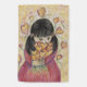 Gathering Love Hearts Artwork features a girl holding a bouquet of hearts. Golden hearts swirl around her. Art is a reminder to receive love and how it can sustain us. Inspirational artwork by Laurel Latto for DonnaBellas Angels.