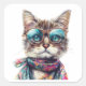 Sticker o calcomanía, de gato con lentes y estilo moderno, ideal para amantes de los gatos y el arte colorido. Perfecto para decorar laptops, agendas, botellas, cuadernos o regalos originales.