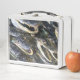 This is a standard metal lunchbox that appears to work just fine. We designed this box ourselves with an uploaded photo and custom text on the front and back. It looks absolutely beautiful except the front of the lunchbox is not centered like it shows in the photo. The print borders don't align with the inset flat part of the box where the preview photo online showed it perfectly centered in there. The back looks nice and centered though.