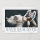 Announce your wedding date with this classic photo save the date flat card. It features blue art deco typography with matching pattern. Personalize by adding your photo and details. This elegant vintage theme save the date announcement is perfect for Gatsby theme weddings.