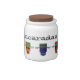 Sugar skull men in hats jar. Spanish, "Sugary Sweets," text can be customized.