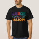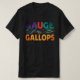 This dynamic t-shirt design features the phrase "Gauge Gallops" in a playful explosion of multicolored, fancy italic fonts. Each letter has its own unique style and energy, creating a visually striking and eye-catching statement. The vibrant color palette adds to the sense of excitement and movement, making this a perfect choice for those who love a bit of flair and wordplay.