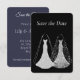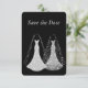 Gay Wedding Save the Date in Black and faux silver glitter wedding dresses.