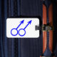This awesome luggage tag is designed for gay men. It features two blue male symbols standing side by side. The background is white. There is customizable text on the back allowing you to personalize your tag with your name and any other information of your choice.