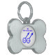 This awesome pet tag is designed for gay men. It features two blue male symbols standing side by side. The background is white and there is customizable blue text inside each of the symbols to put names.There is more custom text above the figures that reads "this doggie has two Daddies"