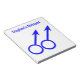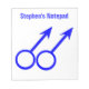 This awesome notepad is designed for gay men. It features two blue male symbols standing side by side. The background is white and there is customizable blue text at the top allowing you to personalize this notepad.