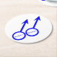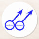 This awesome paper coaster is designed for gay men. It features two blue male symbols standing side by side. The background is white and there is customizable blue text inside each of the symbols to put names.