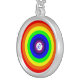 This cute necklace is designed for gay men. It features a round rainbow with two little blue male symbols, standing side by side in the centre of the rainbow. It signifies the love between two men.