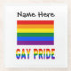 Gay Pride Rainbow Flag with the words GAY PRIDE below in rainbow letters. Above is a place for your name to create a personalized look. Or, add someone else's name for a custom gift. If you prefer, you can remove the name from the design and just have the flag with the words GAY PRIDE. Great for groups and clubs, as well as reunions for friends.