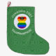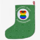 An African angel wears the Gay Pride Rainbow Flag on this large Christmas stocking for Christmas decor. The Christmas Gay Pride Flag African angel is inside a circle of white squiggly squares. The background is green squiggly squares. To personalize, add a name. To customize, add the year. Or, create your own text.
