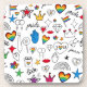 This artwork features a pattern including various symbols related to gay pride in a colorful design.