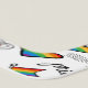 This artwork features a pattern including various symbols related to gay pride in a colorful design.