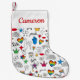 Perfect! Exactly what I ordered! I uploaded a picture of my blue chow, and the screen print was incredible. the back side of the stocking was the red and black checkered print. my puppy's name was also printed on the cuff of the stocking. PERFECT! Highly recommend this product! My puppy's name was screen printed onto the cuff of the stocking, the font was perfect!
