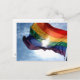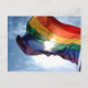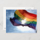 A fluttering rainbow gay pride flag fluttering against bright blue skies, signalling pride and hope in the LGBT movement.