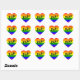 Heart shaped stickers that feature the rainbow colors, of the Gay Flag. In the center of the sticker, the word "Pride", in a bold script font.