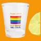 Personalized shot glass with the Gay Pride Rainbow Flag and the words GAY PRIDE below in rainbow letters. Above is a place for a name to create a personalized look in orange letters. Or, create a gift. Makes a lovely housewarming gift for the home bar or stocking stuffer for your favorite Gay person.