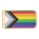 Gay Pride Rainbow Flag Progressive LGBTQIA+ Gold Finish Money Clip