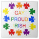 This awesome tile features a graphic image of a selection of rainbow coloured shamrocks encircling a rainbow coloured message that says "Gay Proud Irish". The design is for all LGBT Irish people who love their Irish roots and are proud to be Gay.
