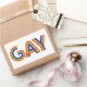 This artwork features the word Gay in a colorful rainbow font.
