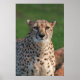 In this striking portrait, a cheetah's piercing gaze meets the camera, captivating viewers with its intensity. The depth and power in its eyes evoke a sense of wonder, drawing admiration for this magnificent predator.