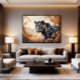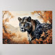 A majestic jaguar emerges among warm-toned foliage, exuding strength and mystery. Its piercing gaze reveals the untamed essence of nature, turning the artwork into a tribute to animal power and the vibrant beauty of life in the wild.