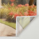This is a square tapestry that has an illustration of a gazebo in the park.