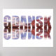 Gdansk text with old town view with reflection poster