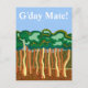 Greeting from Australia Image of Australian bush landscape art Gum trees, clear blue skies and red earth