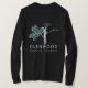 The Glenwood Dance Studio logo has white letters and a white figure so that it shows up on dark backgrounds like this long-sleeved t-shirt.