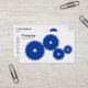 A business card template with an attractive motif made up of a series of cogged gear wheels creating a clean modern design suitable for many types of business. Company name and business on the front of the card. Name, address, telephony, email and web address on the reverse with a smaller version of the main motif.