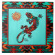 Brighten Your Home with this Unique "One of a Kind" Gecko and Sun Ceramic Tile! It Features a Southwest Gecko Lizard and Sun on a Turquoise Background.....Surrounded by a Turquoise, Orange & Black Border!